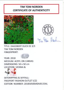 Norden‘s models include Jackson Pollock and Max Ernst, the founders of the drip painting style, which is an essential part of each of Tim Tom Norden’s works. As well as Hermann Nitsch, whom Norden knows from his time working in Bratislava. Nitsch is the author of the technique of color pouring, by which he paints his pictures known as “Schüttbilder”. Sky – spill painting is also a fixed element in Norden’s works.