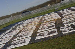 From 2011 mainly as overpainting of trilogies. The 3 pictures are each placed next to each other on the floor and then splashed from the sky. After some dripping one will be removed, after further dripping also the second. Finally the the 3rd picture of the trilogy will be finalized with bungee painting splash’s.